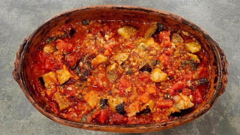 Patëllxhanë me domate e erëza të freskëta nga zonja Albana