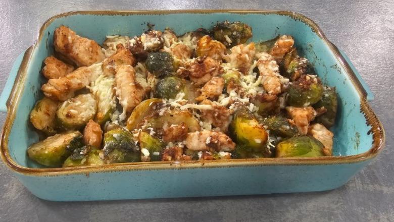 Lakra Brukseli në furrë me pulë, djathë dhe hudhër nga zonja Albana