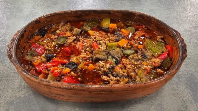 Tavë me mish dhe qepë të njoma nga zonja Albana