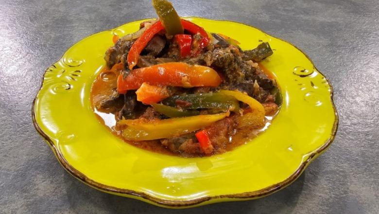 Mëlçi viçi me speca dhe qepë të karamelizuara nga zonja Albana