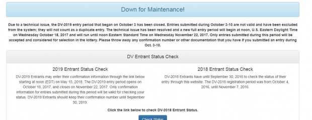 Pas problemeve të krijuara me aplikimet e para për Lotarinë Amerikane, të cilat sipas njoftimit të Departamentit Amerikan të Shtetit “u dogjën” të gjitha, sot do të nisë sërish rreth orës 18:00, aplikimi, i cili zyrtarisht do të mbyllet më 22 nëntor. Problemet në serverin e Lotarisë bënë që aplikimet e nisura prej datës tre tetor të jenë të pavlefshme dhe gjithçka rinis sot nga e para.