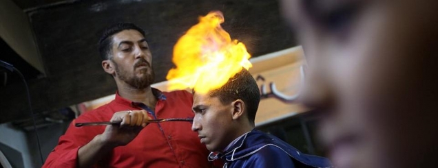 për të drejtuar flokët me flakëPër të gjithë ata që ju janë mërzitur kaçurrelat, një salon në Egjipt ofron drejtimin e tyre me anë të një trajnimi me flakë. Kjo metodë po del shumë efikase, pasi që fijet mbesin në të njëjtën formë edhe pasi lahen.