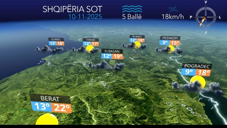 10 Nëntor, 08:14Temperaturat nuk do të kenë luhatje të ndjeshme, duke mbetur në shifrat deri në 17 gradë celsius gjatë mesditës dhe gjatë natës 10 gradë mesatarisht.