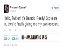 paraardhësit e tij dhe zonjën e parëPër herë të parë pas gjashtë vitesh presidenti i Shteteve të Bashkuara të Amerikës ka hapur llogarinë e tij personale në rrjetin sociale Twitter. Barack Obama është bashkuar zyrtarisht në Twitter si @POTUS (President Of The United States). Llogaria menaxhohet nga vetë Obama. Brenda 24 minutave presidenti ka arritur të grumbullojë 100 mijë ndjekës.