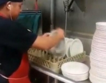 sekonda? Tashmë mundeniLarja e pjatave zakonisht klasifikohet si një nga punët më të mërzitshme. Megjithatë duket se ky dikush ka gjetur mënyrë dhe një teknikë mjaft efikase për të mbaruar punë në një kohë të shkurtër.
