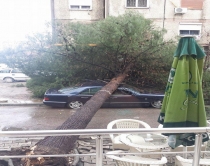 e forta, pisha bie mbi makinëErërat e forta të natës kanë rrëzuar një pishë mbi makinën që ishte e parkuar në anë të rrugës