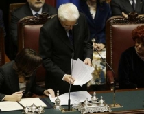 fjalimit për pak çaste dhe nis të qeshëGjatë betimit të tij në Parlamentin italian duket se ka patur një çast hutimi nga presidenti i ri Sergio Mattarella.