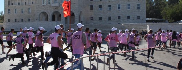 Video/ Vogëlushet apel me kërcimSensibilizimi kunder kancerit te gjirit/ Mijëra qytetarë u bënë pjesë e “Maratonës së Jetës” në vrapimin i cili nisi nga sheshi “Nënë Tereza” për të kapur finishin tek Kodrat e Liqenit Artificial per t'i thene jo kancerit te gjirit. I bashkohen vrapit edhe zyrtarë, diplomatë e personalitete të politikës dhe pushtetit vendor.