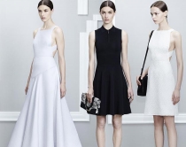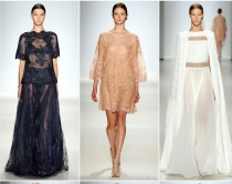 koleksion veshjesh nga Tadashi ShojiGjatë sfilatës Shoji shpalosi një shpirt romantik me dizenjot në ngjyrë të trëndafiltë, fildishi, ari dhe blu e thellë deti.