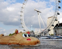 hipopotami notues në LondëNjë hipopotam 21 metra i gjatë prej druri është parë teksa lundronte në lumin Thames në Londër.