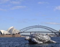 barriera koraleve në AustraliVeprat e artit të Price janë vendosur nën ujë mes peshqve dhe peshkaqenëve gjatë gjithë ekspozitës nën mujore.