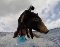 të bëjë sërfDerrkuci sërfist është kthyer në një personazh të famshën në rrjetet sociale pas videove të shumta të tij duke bërë sërf. Videot dhe shfaqjet e derrkucit duke bërë sërf po qarkullojnë në mediat online duke patur miliona klikues.