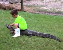 19 Gusht 2014, 19:57Një djalë i vogël pesë vjeçar po mëson traditën e familjes së tij, për t’u bërë një kujdestar dhe përqafues aligatorësh.