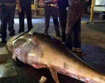 3 Korrik 2014, 21:19Policia italiane “kap” në mes të rrugës, në Romë, dy peshq ton. Peshqit me peshë nga 100 kilogramë secili u gjetën mbrëmjen e së mërkurës në asfalt, në rrugën Tiburtina, në kryeqytetin e Italisë. Policia menjëherë nisi hetimet për të mësuar se nga ranë në qendër të qytetit dy peshqit gjigantë.