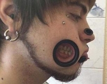më të pazakonta që keni parëNdodh që shumë njerëz ta ekzagjerojnë më piercing apo me tatu, por në rastin e këtij djali edhe ekzagjerimi i kalon kufinjtë. Ai ka realizuar disa piercing duke hapur në fytyrën e tij gropa të shumta ku dallohen mjaft mirë