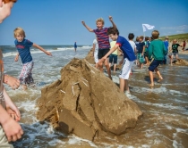 treguar efektin e ngritjes së nivelit të detitKujdestarët për ruajtjen e bregdetit organizuan Betejën e Detit, me pjesmarrjen e fëmijëve në mënyrë që të jenë të vetëdijshmë për rëndësinë e mbrojtjes nga përmbytjet në vendin që ka nën nivelin e detit gati dy të tretën e sipërfaqes së tij.