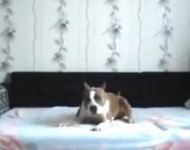 qeni në krevatin tuajQenit nuk i lejohet që të hipi në krevat. Kështu ka vendosur i zoti i tij por për ta vërtetuar se çfarë ndodh kur qeni i tij është vetëm në dhomë, ai vendos një kamer të fshehtë.