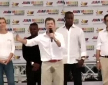 të Kolumbisë gjatë fjalimit politikGjatë fjalimit që po mbante përpara mbështetësve të tij, Presidenti Manuel Santos nuk ishte në gjendje të kontrollonte fshikëzën. VIDEO