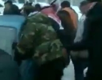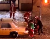 me grushta në mes të rrugësNjë grup personash të veshur me kostumet e Babagjyshit të Vitit të Ri janë filmuar nga një kamera duke u zënë në një rrugë të New York natën e së shtunës.