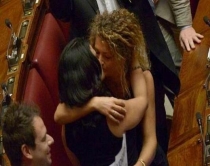 në sallën e ParlamentitNjë puthje në buzë e dy deputeteve gra ka ndodhur sot në parlamentin italian. Janë pikërisht deputete të Lëvizjes 5 Yjet.