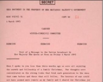 për “Luftën e 3 Botërore”Marrëdhëniet e tensionura midis Bashkimit Sovjetik dhe Perëndimit 30 vjet më parë, bënë që zyrtarët britanikë të hartonin një fjalim për Mbretëreshën Elizabet drejtuar kombit në rast të një lufte bërthamore.