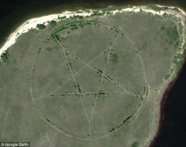 shenjë e djallit apo ushtrive ruse?Një pentagram i madh është shfaqur në afërsi të një liqeni në Kazakistan. Pentagrami është shfaqur në Google Earth dhe ka një diametër prej 366 metra.