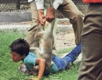 djaloshin dhe e plagos në fytyrëNjë djalosh është sulmuar nga një majmun në një kopësht zoologjik në Ratlam, Madhya Pradesh. Djaloshi i quajtur Raghav ka marrë disa lëndime serioze pasi majmuni i’u hodh në shpinë djaloshit dhe po e qëllonte në fytyrë.