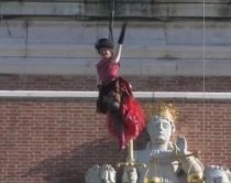 shijuan “Fluturimin e Engjëllit”Vizitorët vendas dhe të huaj shijuan një nga shfaqjet më kryesore të karnavaleve të qytetit italian Venezia. “Fluturimi i Engjëllit” në të cilin një grua e veshur me një kostum karnavalesh zbriti poshtë nga lartësia e Kullës së famshme të sheshit Shën Markut.