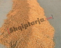 bllokon rrugën: DO THAJ MISRINFermeri Riza Teta ka bërë një zgjedhje të çuditshme për të tharë misrin. Ai ka "privatizuar" një segment të unazës së qytetit në Fushë Krujë, duke e bllokuar në dy anët e saj me shirita dhe me dengje bari të presuar.