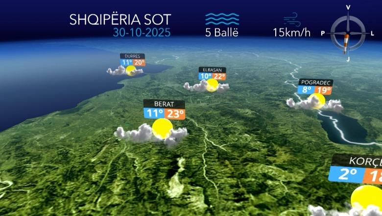 30 Tetor, 07:06Vendi ynë edhe këtë të enjte do të jetë në ndikimin e kushteve atmosferike të qëndrueshme. Valëzimi në det do të jetë i forcës 2-3 ballë.