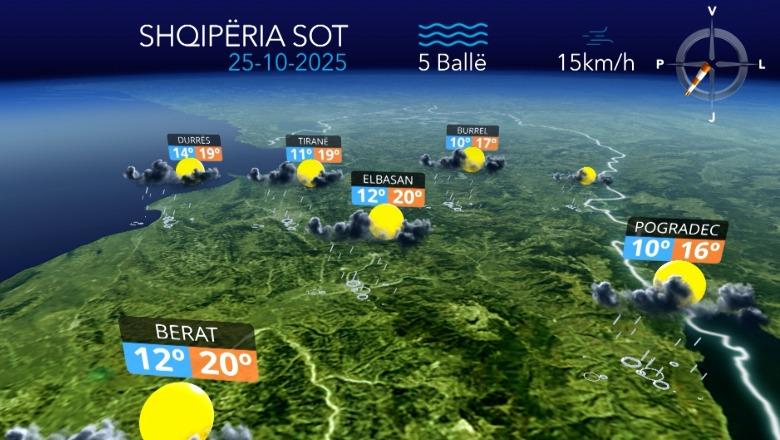 25 Tetor, 07:02Moti parashikohet alternime vranësirash mesatare deri të dendura dhe kthjellime. Reshjet e shiut parashikohen me intensitet të ulët dhe të karakterit lokal në pjesën më të madhe të vendit, ndërsa lokalisht shtrëngata afatshkurtra përgjatë maleve.