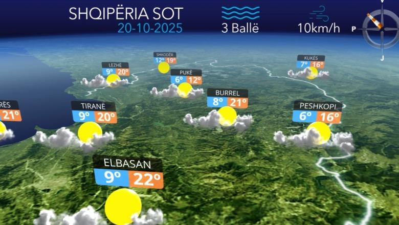 20 Tetor, 08:11Moti parashikohet i kthjellët në të gjithë territorin e vranësira të pakta kalimtare në orët e mesditës dhe pasdites