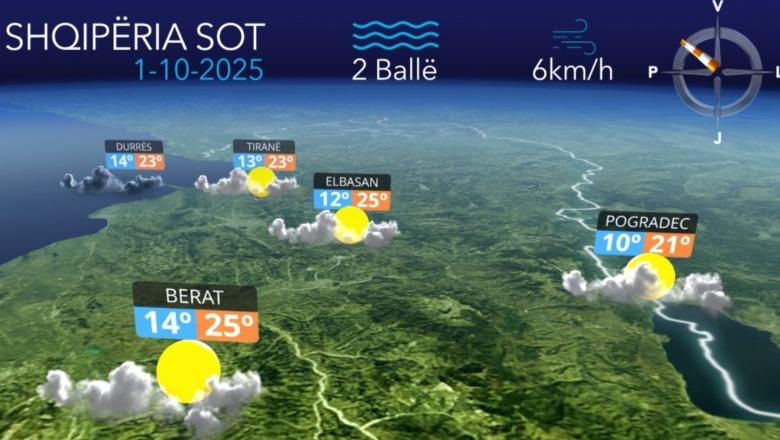 1 Tetor, 07:09Moti parashikohet me alternime vranësirash mesatare deri të dendura, më të theksuara pas orëve të mesditës, megjithatë nuk mungojnë intervale të herëpashershme me kthjellime, kryesisht përgjatë Ultësirës Perëndimore.