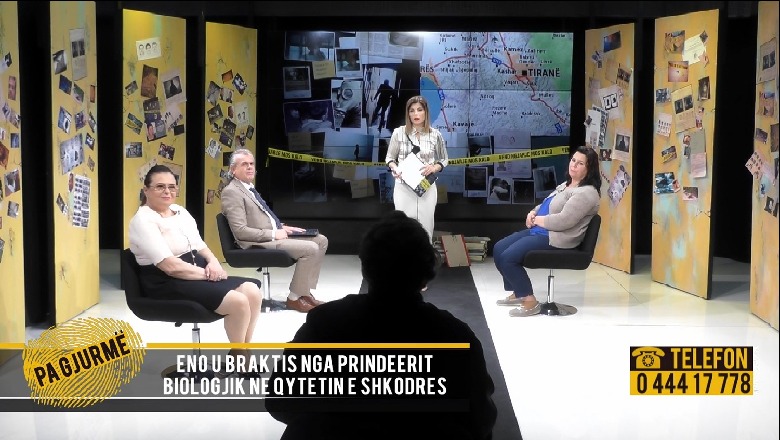 31 Tetor 2019, 22:57Një tjetër histori vjen në ’’Pa gjurmë’’, një tjetër nënë birësuese sjell në studio djalin 16-vjecar. Eno është në kërkim të prindërve biologjik. Fati e desh që të braktisej nga prindërit biologjik që kur u lind në maternitetin e Shkodrës, por në vitin 2005 Eno u birësua. Laureta dhe Rasim Melcaku nga Shkodra birësuan djalin me emrin Eno, në maj të vitit 2005, kur ishte 19 muajsh, nga shtëpia e fëmijës Shkodër.