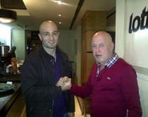 firmos për skuadrën e PartizanitSulmuesi i njohur Migen Memelli ka firmosur për skuadrën e Partizanit. (Në foto: Presidenti i Partizanit, Gaz Demi dhe futbollisti Migen Memelli)
