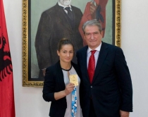 xhudos në botë, Majlinda KelmendinKryeministri Berisha është takuar sot me një “mbretëreshë”, pasi kështu e ka cilësuar ai, kampionen e botës në xhudo, shqiptaren Majlinda Kelmendi. Berisha iu ka rrëfyer në Fb, mbështetësve të tij, takimin me sportisten.