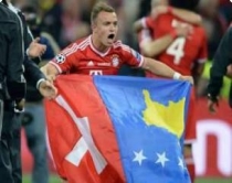 27 Maj 2013, 17:46Shpalosja e flamurit të Kosovës nga futbollisti kosovar Xherdan Shaiqiri, pas ndeshjes finale të Ligës së Kampionëve