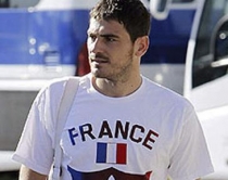 stërvitje me fanellën e FrancësKapiteni i ekipit të Spanjës, Iker Casillas është paraqitur në stërvitje me pjesën tjetër të ekipit kombëtar me një fanellë të ekipit të Francës