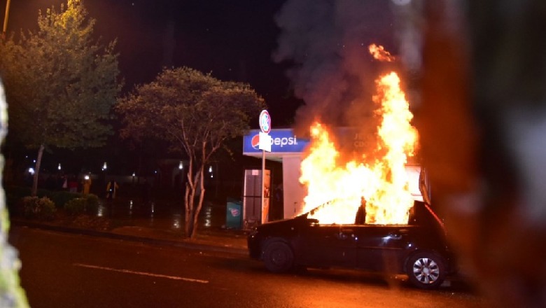 Bashës i del nga duart protesta/ Digjet makina tek Parlamenti, thyhen xhamat e biznesit (VIDEO)