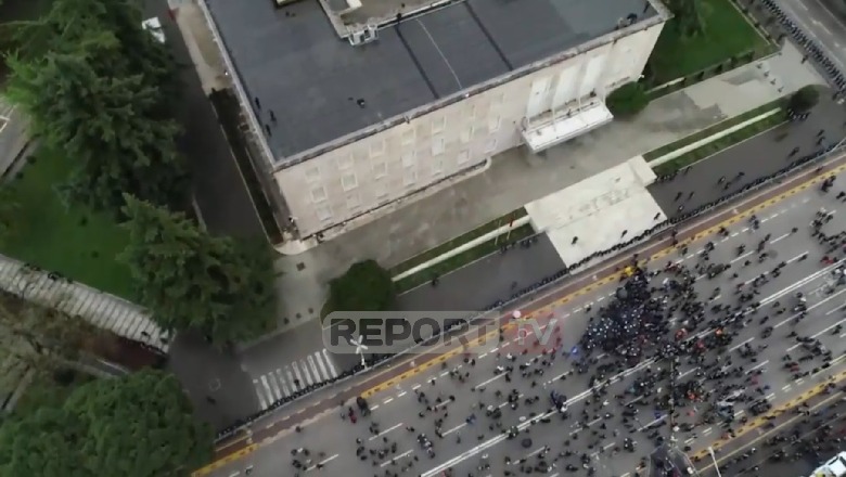 Pamjet me DRON nga protesta e opozitës para Kryeministrisë