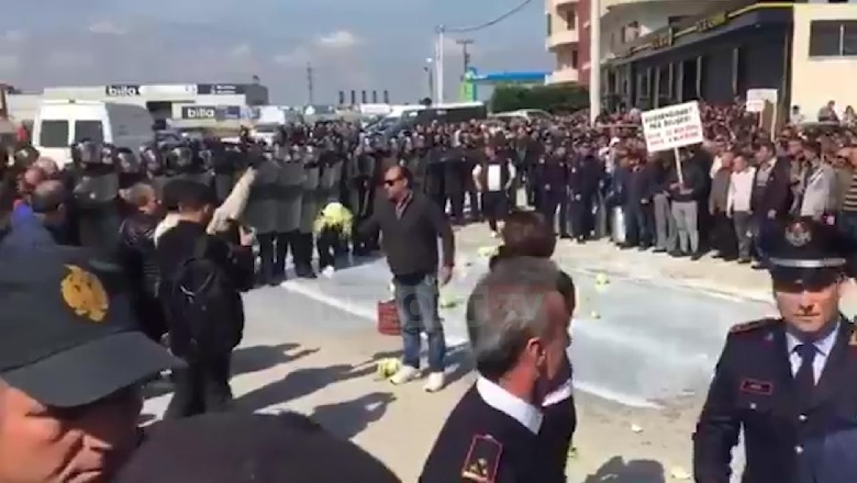 20 Mars 2019, 11:09Fermerët kanë derdhur në mes të rrugës prodhimet e tyre si shenjë proteste për nivelin e lartë të tvsh-së. Policia ka shkuar në vendngjarje dhe po përpiqen të largojnë nga rruga kryesore fermerët, të cilët kanë bllokur qarkullimin e automjeteve në rrugën kryesore.