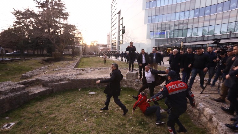 26 Shkurt 2019, 16:41Mbyllet mes tensionit dhe përplasjeve me policinë protesta tre orëshe e opozitës para Kuvendit. Protestuesit tentuan të çajnë kordonin e policisë, turma u shpërnda pas hedhjes së gazit lotsjellës. Basha dhe Berisha në mesin e protestuesve, asnjë thirrje për tërheqje. Klosi, Sterkaj dhe Abazi u sulmuan nga protestuesit para se të hynin në Kuvend. Basha: Ikën si minjtë, beteja për rrëzimin e qeverisë Rama vazhdon!
