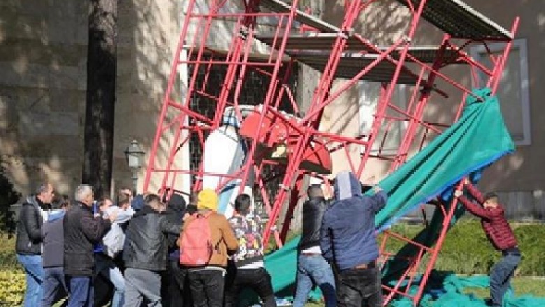Gratë e 'forta' të protestës/ Ja si hoqën skelat dhe shkatërruan 'Kërpudhën' (FOTO+VIDEO)