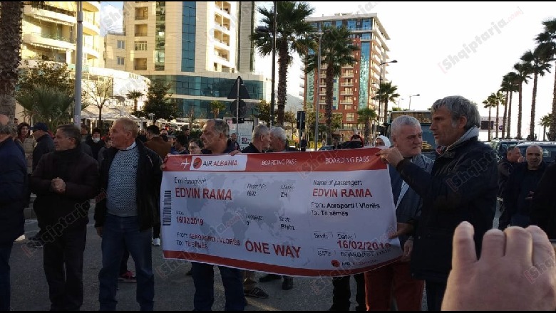 Pak protestues në Vlorë/ Mbështetësit e PD i presin Ramës 'biletën' vetëm vajtje me 'Air Albania' (FOTO+VIDEO)