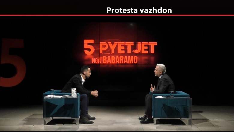 7 Janar 2019, 21:17Në emisionin e sotëm të “5 pyetje nga Babaramo”, studenti Olgert Rakipllari ka folur lidhur me arsyen e nisjes së protestës, shkarkimin e ministres së Arsimit Lindita Nikolla nga kryeministri Edi Rama dhe vijimsinë e protestës.