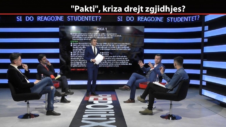 19 Dhjetor 2018, 20:24Të ftuar në studio ishin Jani Marka, pedagog, Lëvizja për Universitetin, Plarent Ndreca, jurist/avokat, Mario Nesturi, student dhe Igli Tole, student. Qeveria propozoi sot një plan me tetë pika për t'i dhënë zgjidhje kërkesave të studentëve gjë e cila është mirëpritur nga studentët, të cilët njoftojnë mbylljen e protestës ditën e premte.