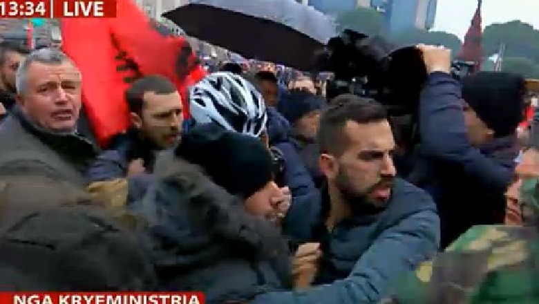 17 Dhjetor 2018, 13:35Sqarohet arsyeja e tensionimit të situatës te Kryeministria. Një student bëri apel që të krijohet një kordon duke rrethuar Kryeministrinë. Në momentin që studentët tentuan të formojnë kordonin rreth Kryeministrisë nuk u lejuan nga policia duke sjellë reagimin kundër tyre. Por një grup studentët kanë ndërhyrë duke formuar një kordon për të shmangur përplasjen me policinë.