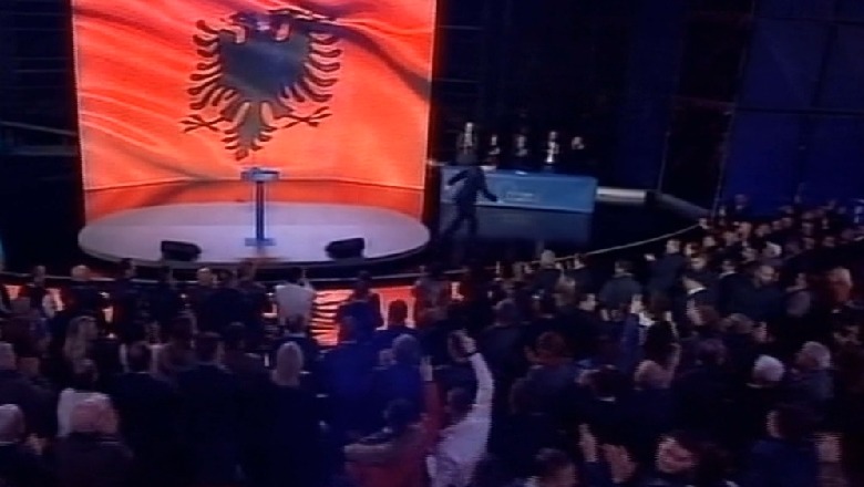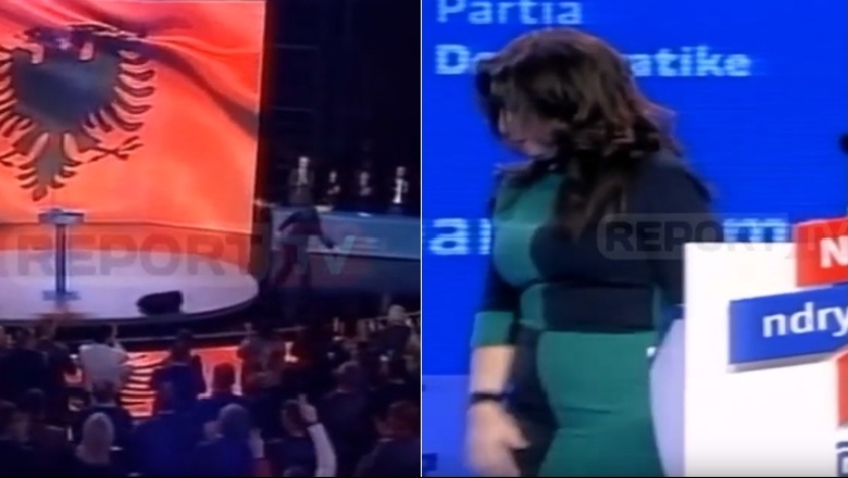 15 Dhjetor 2018, 12:18Momenti i sikletshëm për kryetarin e PD-së, pasi mbaroi fjalën përshëndetëse në foltoren e Pallatit të Kongreseve, përpara anëtarëve të Kuvendit Kombëtar të PD-së