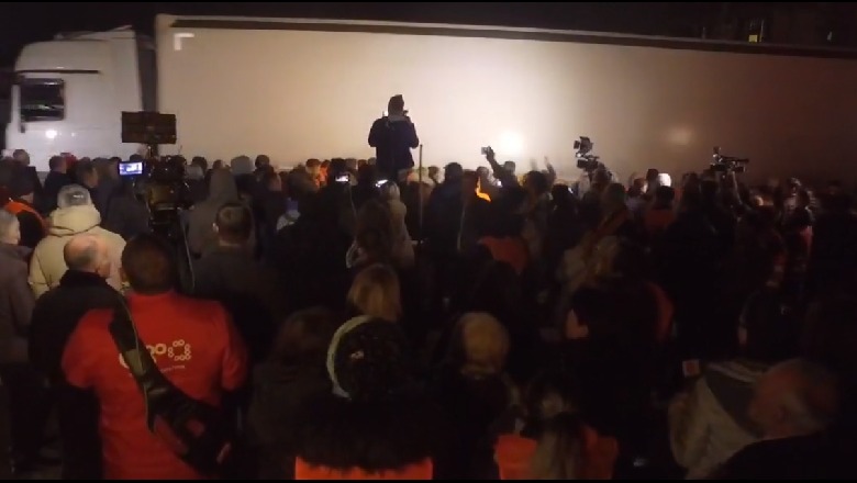 'Unaza e Re'/ Rruga e bllokuar nga protestuesit, banorët lejojnë kamionin të kalojë (VIDEO)
