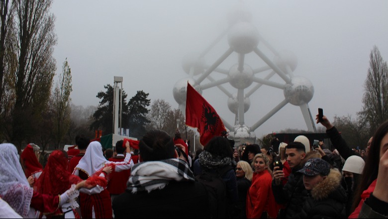 Bruksel/ Shqiptarët aktivitet me rastin e Festave të Nëntorit, flamuri kuq e zi mbi “Atomium” (Video)